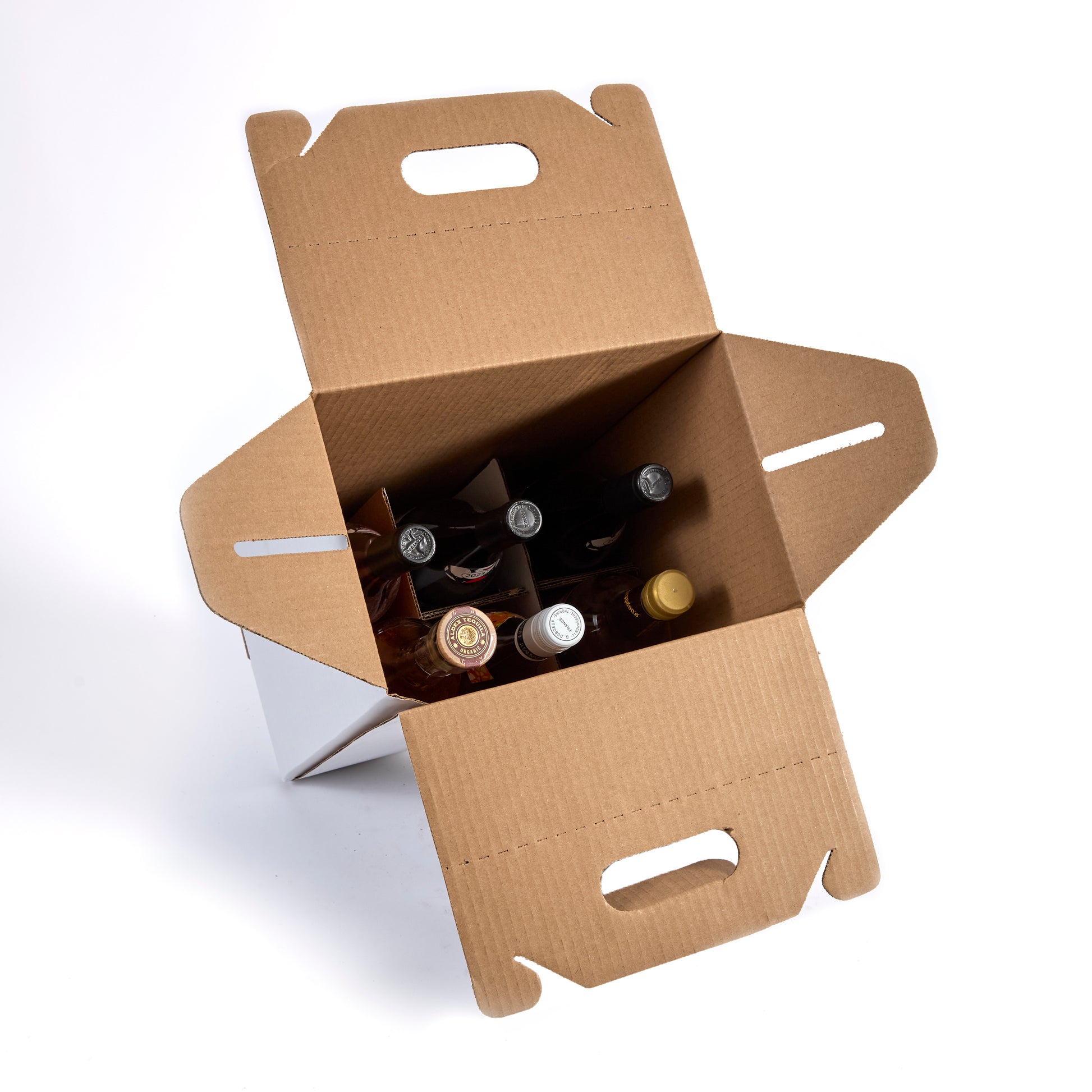 Furthermore this wine tote for six bottles, made of ECT 32 rated Kraft corrugated cardboard, is a durable and reliable alternative to transporting wine in a flimsy box or bag. It can be used again and again doesn’t require any tape, staples, or packing wizardry to assemble.
