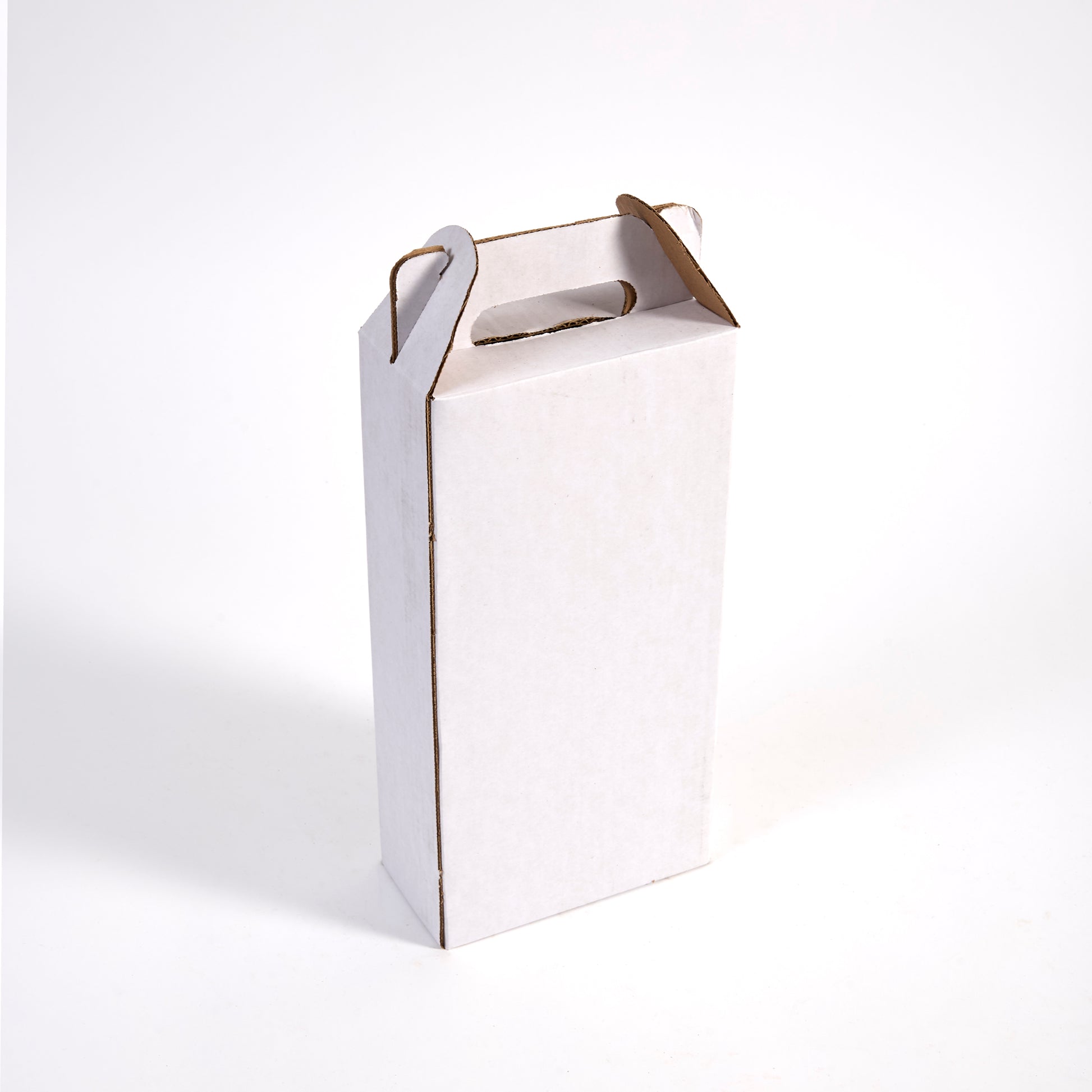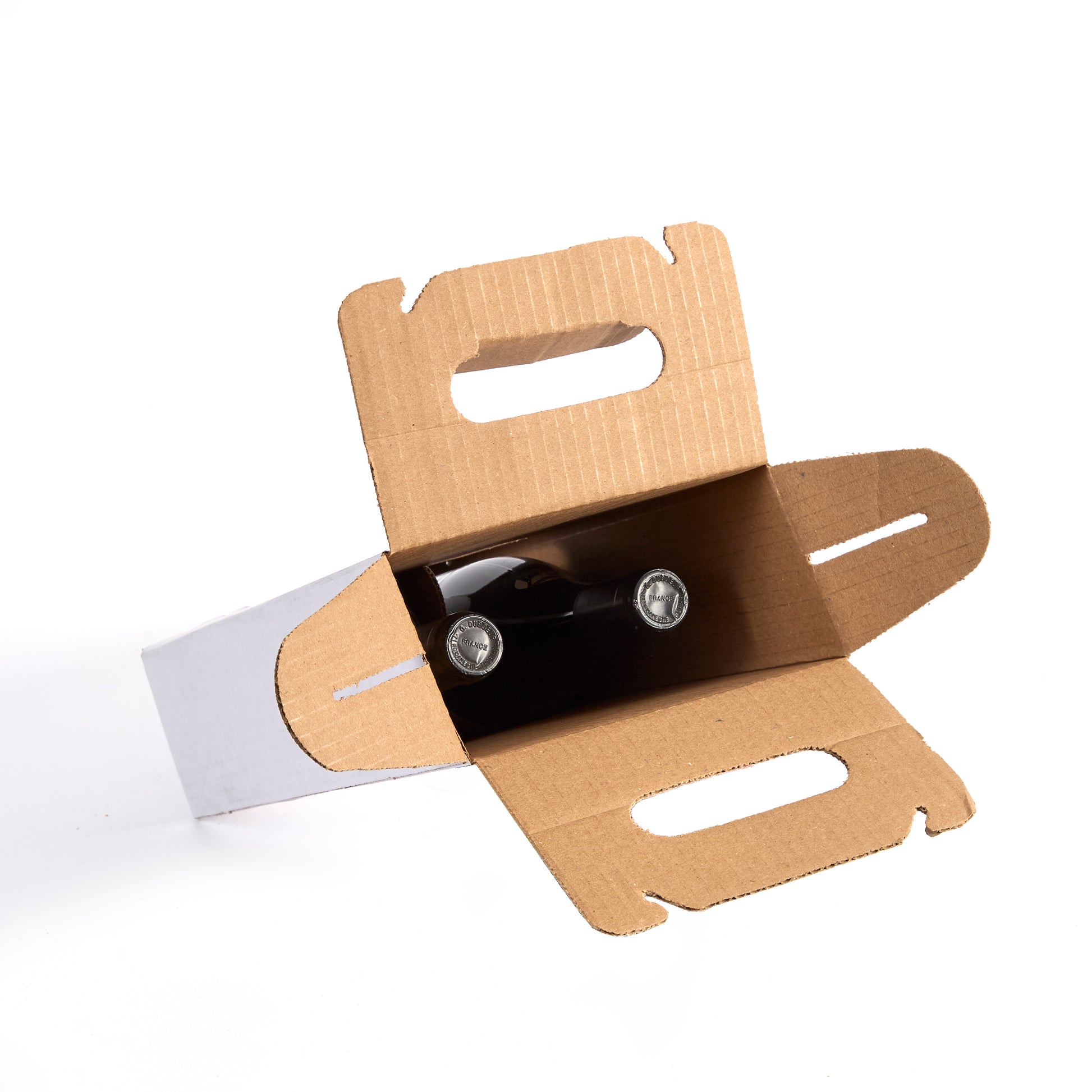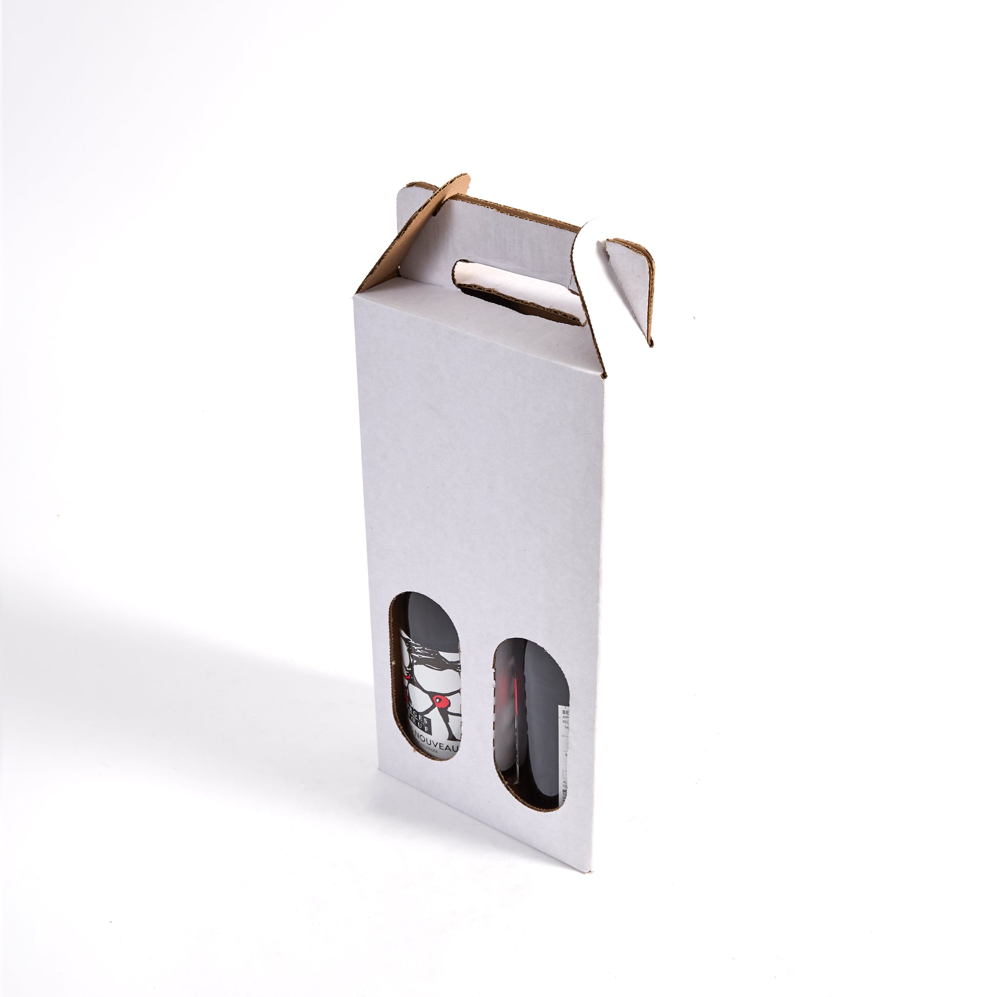 Furthermore this wine tote for two bottles, made of ECT 32 rated Kraft corrugated cardboard, is a durable and reliable alternative to transporting wine in a flimsy box or bag. It can be used again and again doesn’t require any tape, staples, or packing wizardry to assemble. Personalize it with our silk screen printing services or leave it plain—think of the white as a blank canvas.